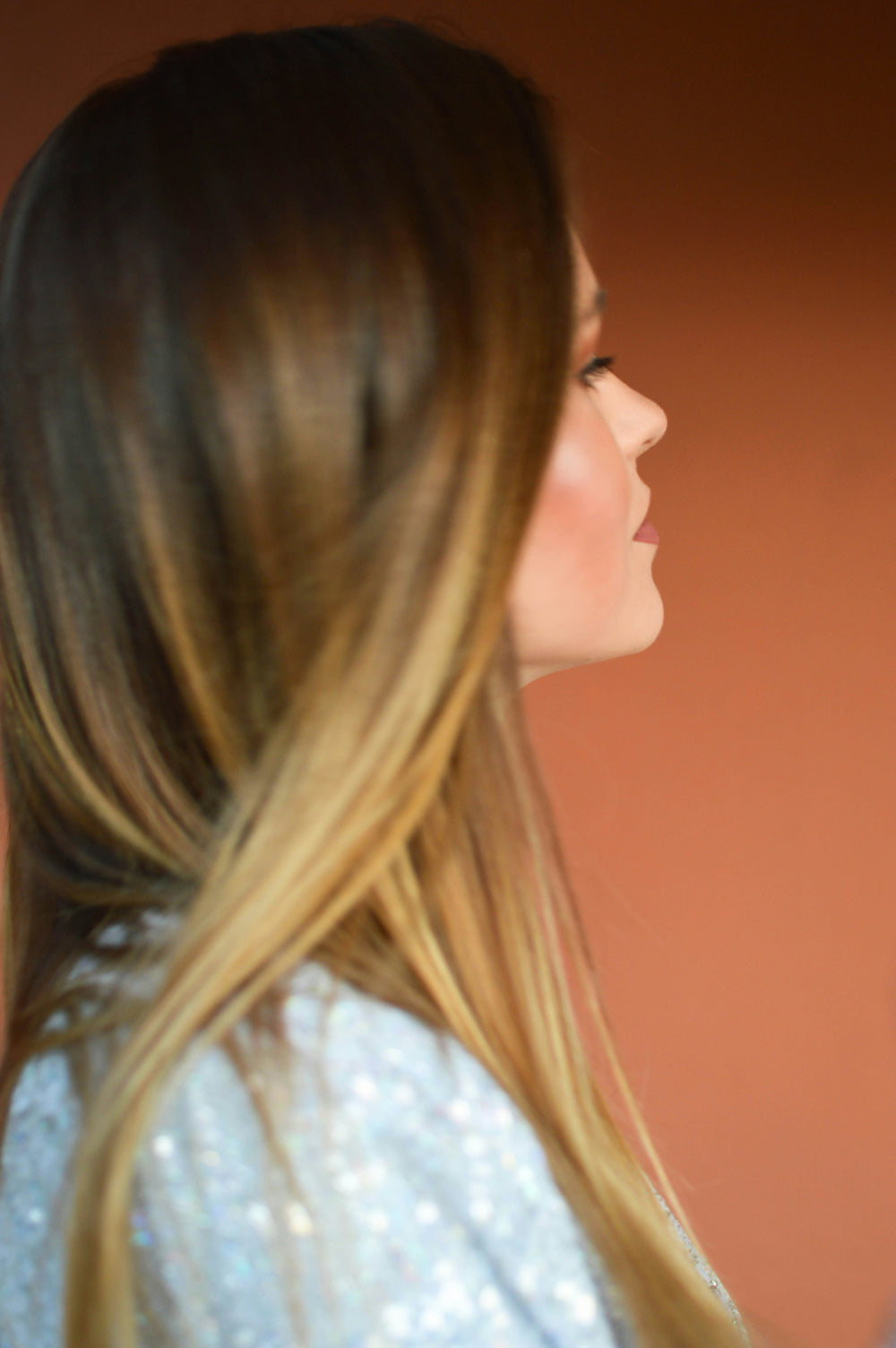 woman posing with long wavy hair