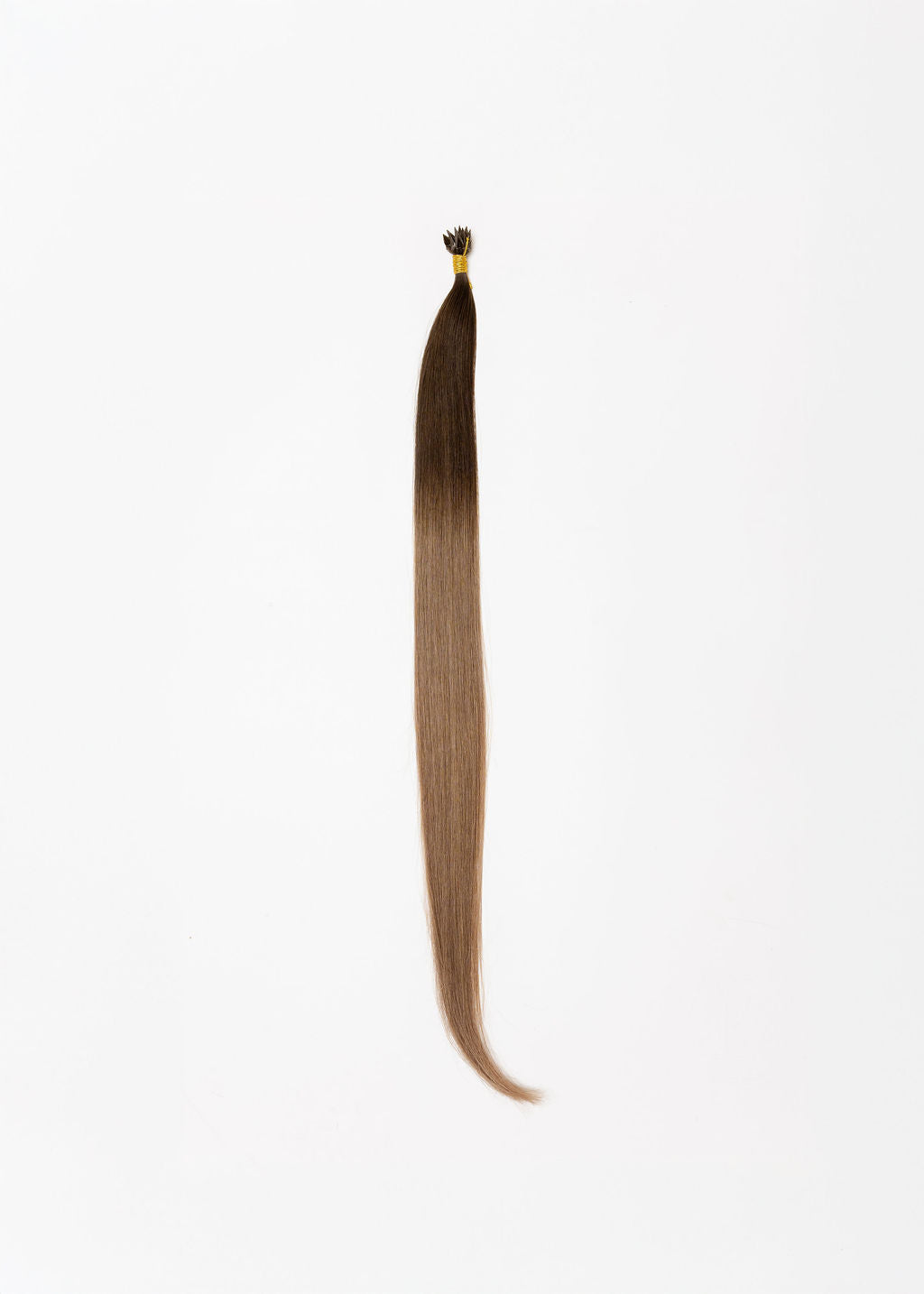 A dark brunette ombré melted into a dark caramel. One of our most diverse colors. Great as a highlight with darker browns or a lowlight for brondes. Our favorite combos include #3/8 with #10/16, #6/14, #4 or Rooted #2-3/10.