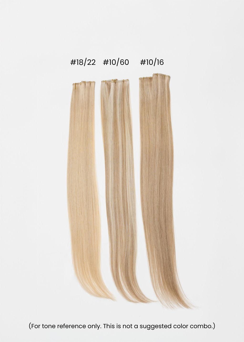 Dark-blonde combination. Perfect for low-lighting blondes. Add some #10/16 to your #60 and #18/22 for a natural, dimensional blonde.